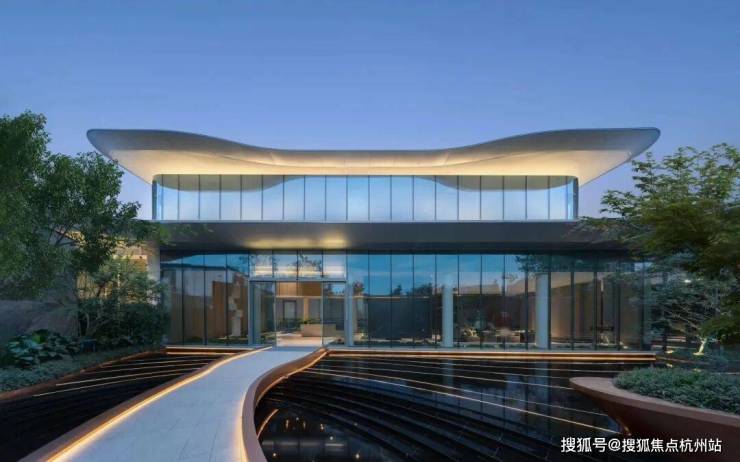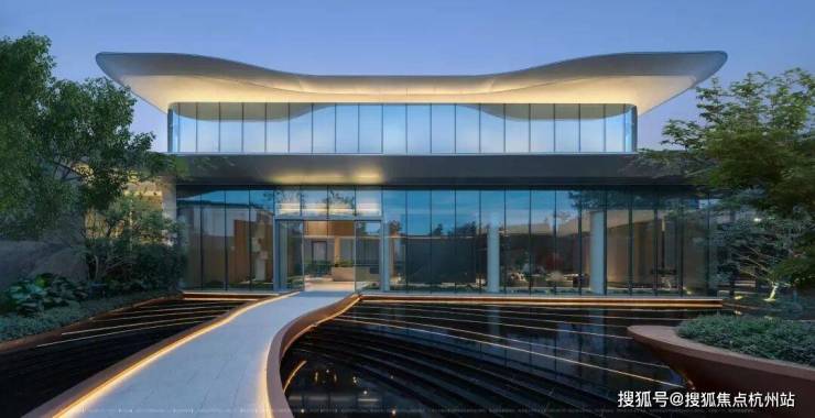建筑立面(官方):现代极简风格,大面积玻璃幕墙 + 金属线条,“水晶天幕” 质感,270° 环幕视野,采光、景观双优。