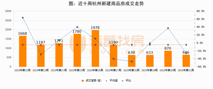 【杭州成交周报】第31周新房成交646套,二手房1252套,涨价房源192套
