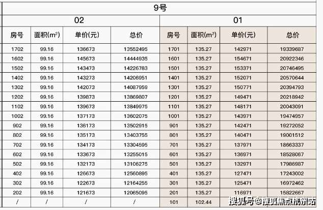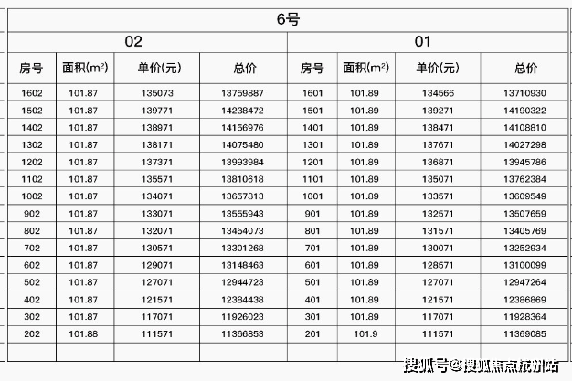 最新一房一价表: