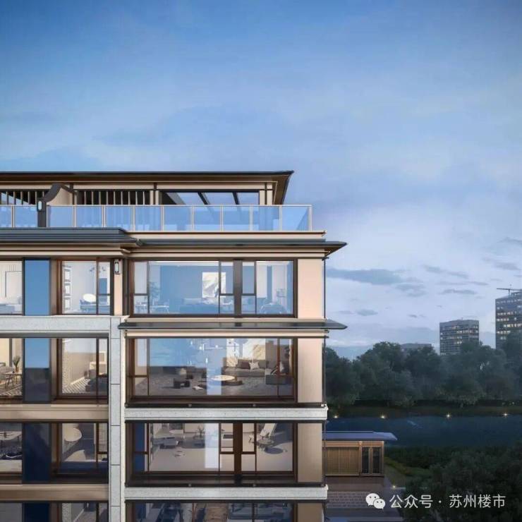 材质选择上也兼顾颜值与实用, 姑苏首个采用石材+铝板+玻璃幕墙打造 ,全封闭阳台统一规制。同时,主干道楼栋专属配置,苏州首现 「四玻两腔」 系统窗,隔音隔热性能双优。