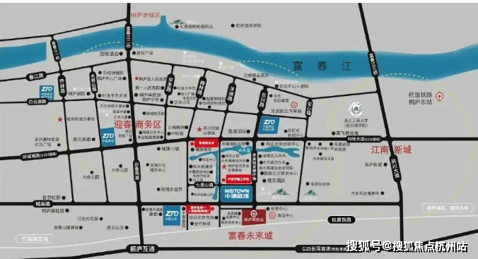 富春未来城确立“两轴、两环、两体、一心”的空间格局,桐庐站、桐庐东站两座高铁站环绕,桐庐首个高端消费目的地——银泰城落地,交通、医疗、教育、文化、公园、商业等全生活场景融汇的未来生活版图,璀璨呈现。