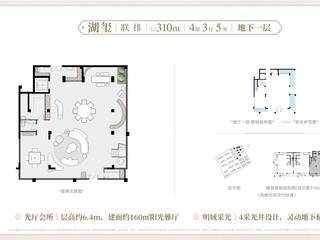 310㎡五房两厅六卫,作为顶奢联排产品,空间极致阔绰,南北通透,全明格局,动静分区合理;入户私家庭院,私密性强;一层老人房设计,贴心便捷;客餐厅横厅布局,连通庭院,气派十足;二层双套房设计,独立卫浴保障私密性;三层主卧大套房,配备独立卫浴、衣帽间与星空露台,奢华体验;地下双层空间,层高约 5.3 米,采光天井设计,可打造私家会所、酒窖、健身房等,拓展生活场景,实得率超 200%,满足三代同堂或高端社交需求。