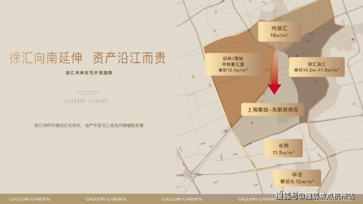 从徐汇开发趋势来看,徐汇向南延伸已成态势。近年来,徐汇作为热门的主城板块,住宅土地供应日渐紧张。随着内徐汇向南延伸,徐汇滨江以绝对实力承接了内徐汇的高单价,而随之南向开发的不断深化,上海南站区域暂无新房供应,而更靠近滨江的长桥板块相较之靠近徐汇腹地的田林、南站板块置业门槛更低,是典型的土地发展红利期。