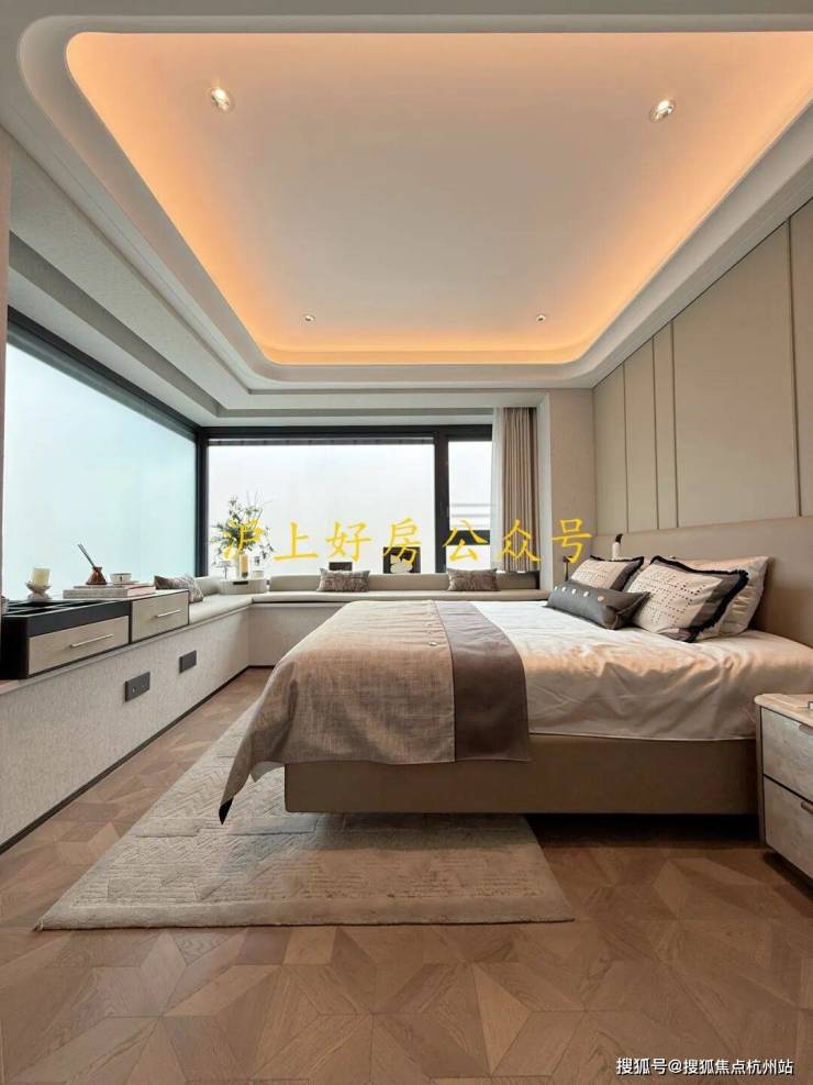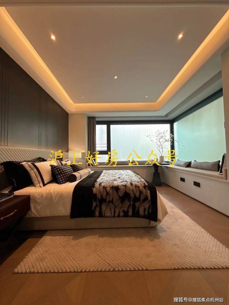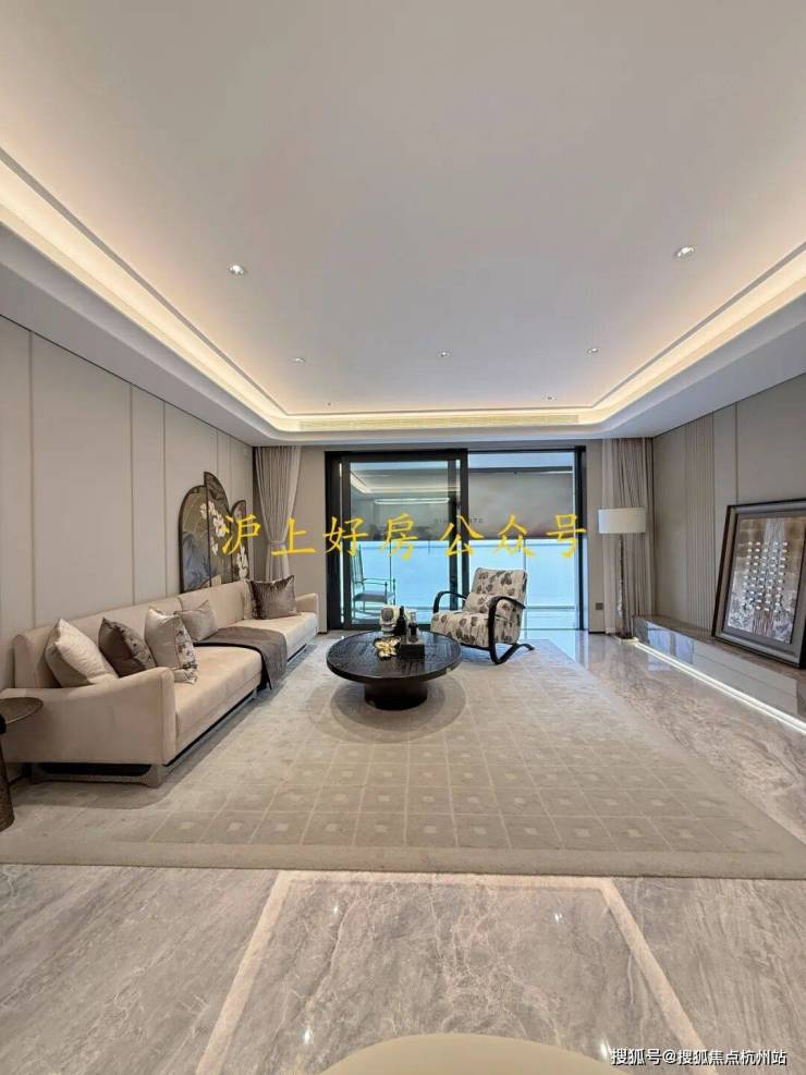 电视背景墙采用卡慕白的石材+皮革造型,弧形吊顶,相当讲究,连空调出风口的形状都打造为海上·清和玺logo山茶花的形状~~三大件为大金(或同等档次)中央空调和地暖,新风系统为百朗(或同等档次),南向阔景阳台,采光视野一级棒!