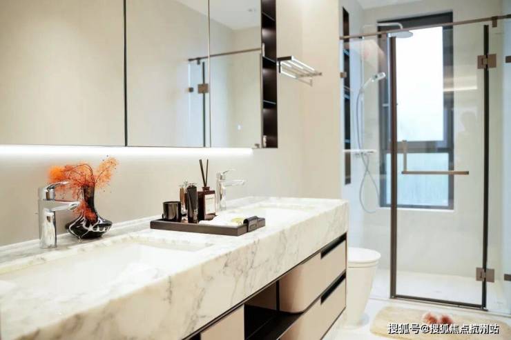 上江南贤庐售楼处电话☎:400-998-9694✔✔双套房设计,主卧双台盆+L形环幕飘窗,尽显奢阔,次卧甚至还拥有独立衣帽间,多代同堂也能静享私密。