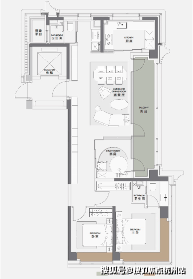 中间户想表达的是,以家人为中心,每个空间给家人极致照顾.