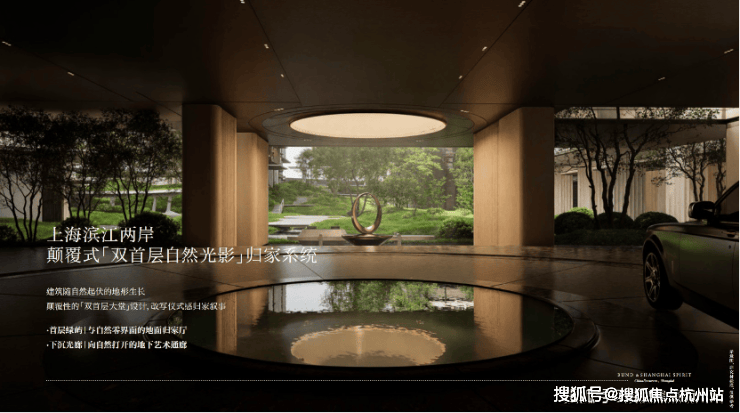 第一重:旗舰门厅与十二帆影:业主先穿过寓意“上海之帆”的旗舰门厅,再路过12座8米高的“帆影门廊”,建筑语汇先将滨江的航海文化融入归家礼序.