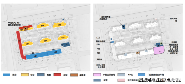 根据规划公示, 项目由6栋18F商品住宅 (其中1栋包含部分保障房)、2栋酒店以及部分商业配套组成。总规划502套房源,其中包含商品房468套,保障性住房34套。