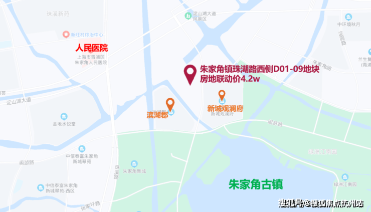 项目位于朱家角板块,周边地块均是低密社区。东至珠湖路、南至唐家浜、西至唐家浜、北至新塘江河, 紧邻朱家角古镇,历史文化氛围浓厚。