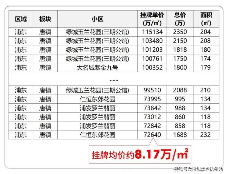 就像唐镇,区域内 房龄近十年、设计标准已然定格于过去 的改善型二手房,挂牌均价时至今日依旧牢固地站在 约8.17万/㎡ 。
