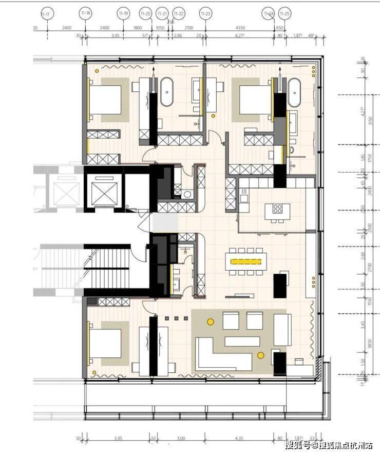 项目以德国包豪斯风格为建筑灵感,创新打造全落地玻璃墙高层住宅,由德国Obermeyer建筑设计事务所与德国Dibelius建筑事务所联袂设计。厚板框架建筑结构,开创了住宅自由定制户型的新模型(项目的科技系统都在地面或是顶棚,后期户型可以自己调整)