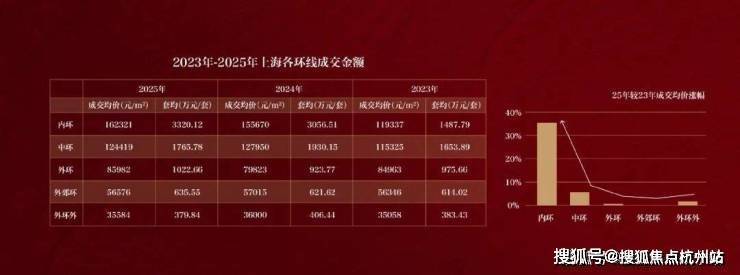从近三年上海成交数据看,中外环以及外环外成交价格基本保持稳定,内中环稳步上涨,唯独内环内呈现跳涨态势。数据显示,内环内新房成交均价从2023年约11.9万/㎡跳涨到2025年约16.23万/㎡,三年涨幅达到36%。