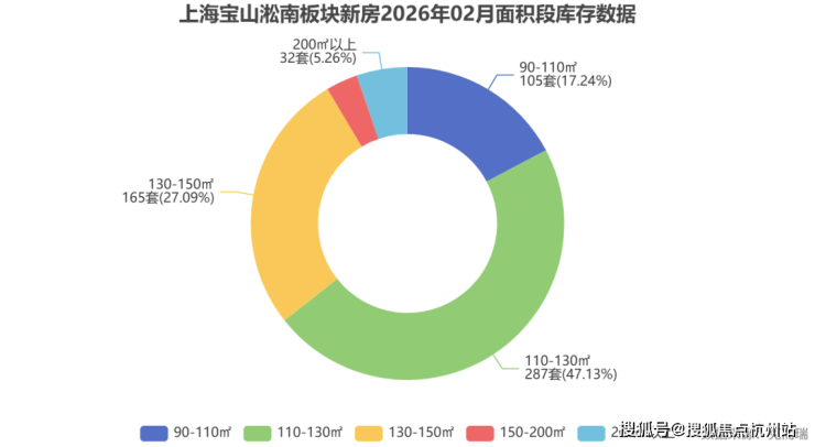 从供应端看,宝山淞南板块新房供应长期断档,上一次主力供应要追溯到2015年的泰禾红御。2026年2月,整个淞南板块新房库存中,建面200㎡以上面积段仅32套,全部来自江湾鸿玺。