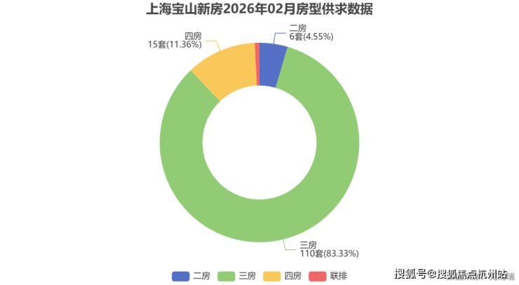 克而瑞数据显示,2026年2月宝山新房成交中,三房仍是绝对主力(占比83%),四房仅占11%。江湾鸿玺以纯四房产品切入市场,既避开了主流竞争,又精准满足了高阶改善客群对空间尺度的需求。