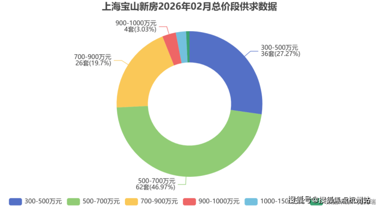图表显示,2026年2月宝山新房成交中,500–700万元总价段占比最高(47%),而1000万以上高端改善产品合计仅占8%。江湾鸿玺瞄准的正是这片蓝海市场,以稀缺产品力打破价格天花板。