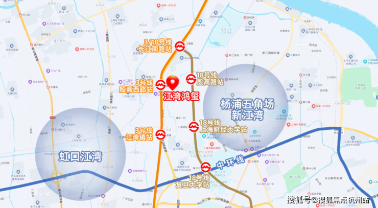 地段,永远是房产价值的第一要素。江湾鸿玺位于宝山高境板块,看似属于宝山,实则坐拥虹口、杨浦、静安、宝山四区交汇的黄金位置。这种“一脚踏四区”的区位优势,让它既能享受宝山的相对价格洼地,又能快速通达市中心核心资源。