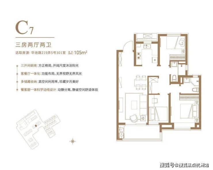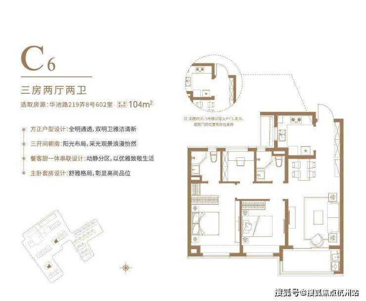 户型设计灵动,目前开放了104㎡3房2厅2卫和103㎡3房2厅2卫样板间,可谓是各有看点: