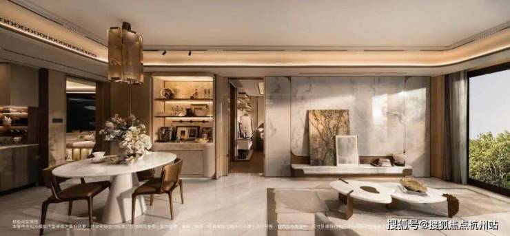 玄关+背景墙升级为天然石材,真正实现 “一户一宅” 的高定体验。