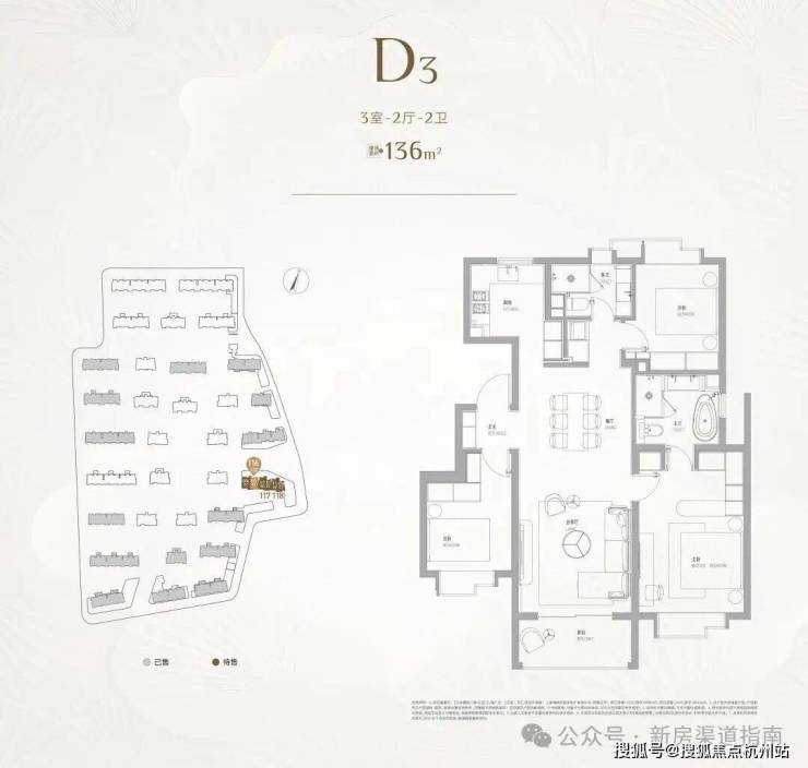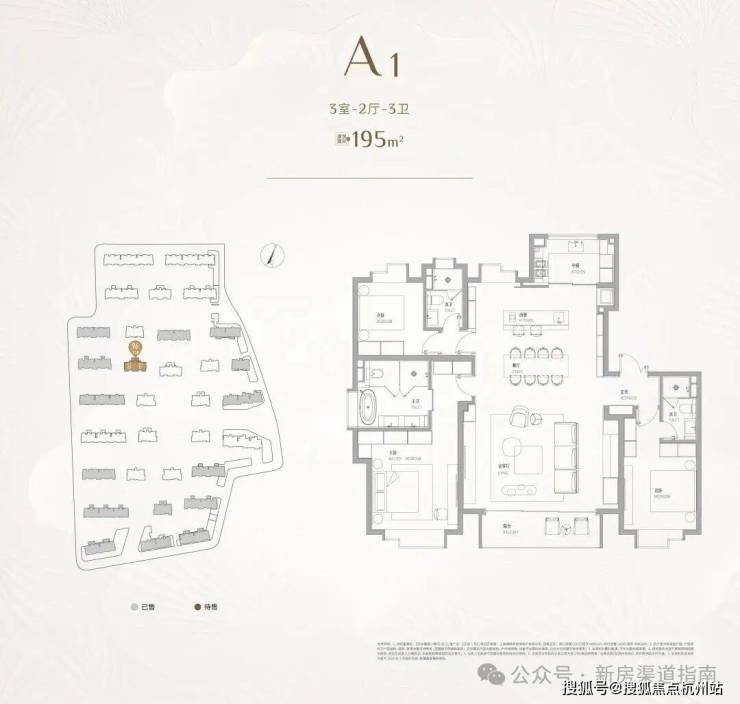 第三,首次入市的顶序产品,建面约195㎡3房。