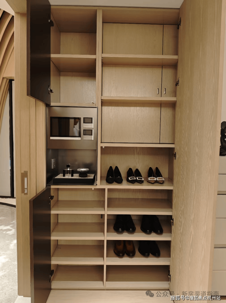 更吸引眼球的是「衣柜」部分,天安是少数交付衣柜的项目,且交付大量衣柜的项目。目前样板间使用的是德国高端品牌德禄的定制衣柜。(装标还在确定中,仅供参考)