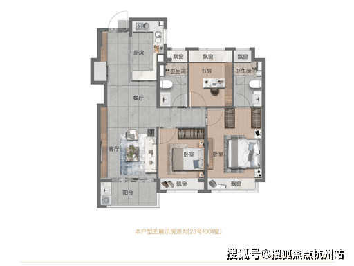 用户价值解读:南北通透、双卫全明格局。主卧套房设计,带独立卫浴与飘窗。客餐厅连接超大阳台,采光通风极佳。双卫配置彻底解决早高峰拥堵,是刚需刚改一步到位的黄金户型。