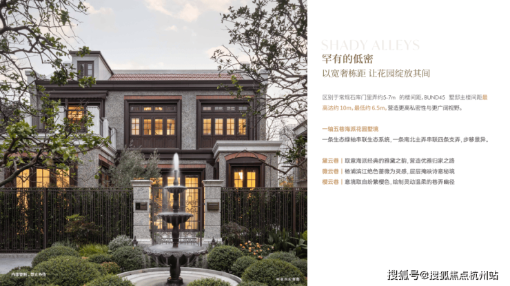 BUND45打造仅38座建面约175-280㎡限藏的奢尺花园别墅, 主力户型超大尺度约61-108㎡花园庭园; 将延续几近失传的海派工匠手工技艺打磨经典卵石立面,还原原汁原味的海派花园生活。犹如“将思南公馆搬到黄浦江畔”!同时,大尺度的花园,让人梦回百年前的花园洋房生活方式,好比与巴金、丰子恺共享同一种花园生活!