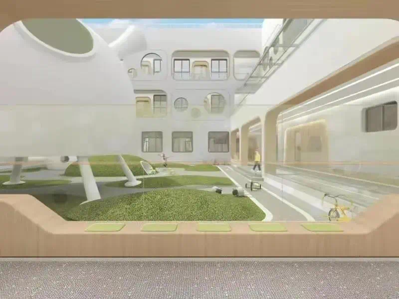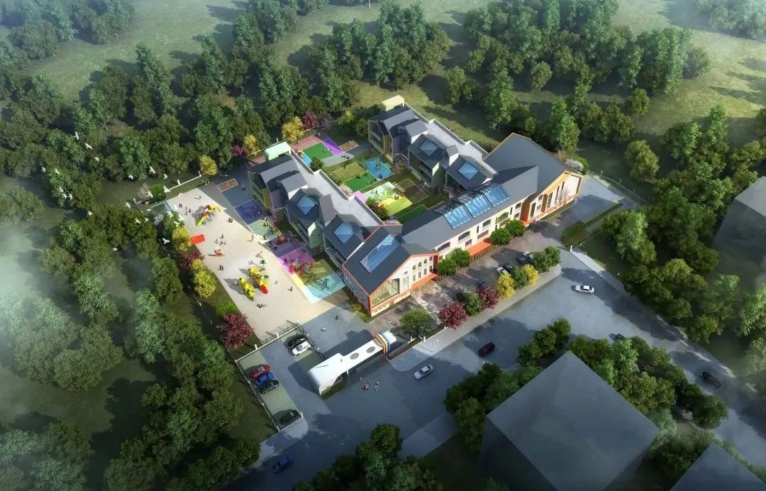 项目位于盈二安置小区内,总占地面积5704平方米,总建筑面积约4492平方米(含室内架空区域),一层室外配套面积为4461平方米(含内庭院区域),屋顶活动空间装修面积为1477平方米,规划设置12个班。