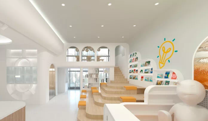 项目位于融创时代奥城小区内,总建筑面积4000.71平方米,其中地上面积3020.25平方米,地下面积980.46平方米,室外面积2793.3平方米,规划设置9个班。