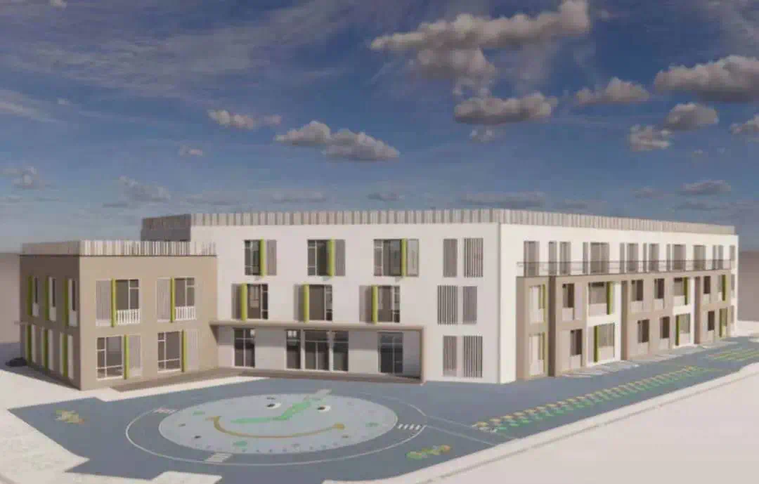 项目东至盈新路,南至后解放河,西至铁东路,北至通文路。总用地面积31157平方米,总建筑面积59053.3平方米,其中地上建筑面积30371.8平方米,地下建筑面积28681.5平方米。项目规划设置36个班(远期预留48个班)。