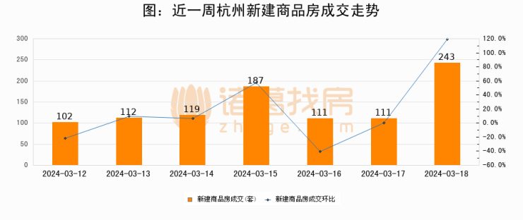 【杭州成交日报】03月18日新房成交243套、二手房316套;涨价房源129套