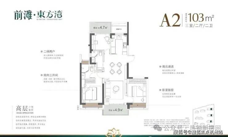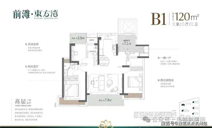 具体细节方面,项目目前只有一个建面约100㎡三房的样板间,带软装后面宽约3.3米,吊顶后层高约2.73米。