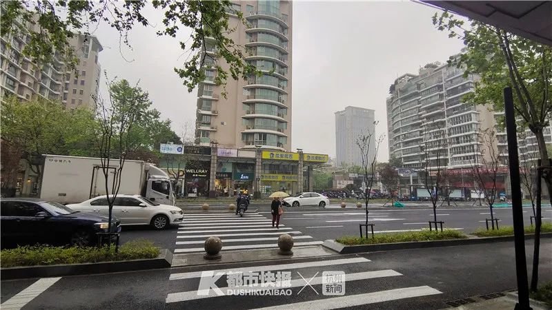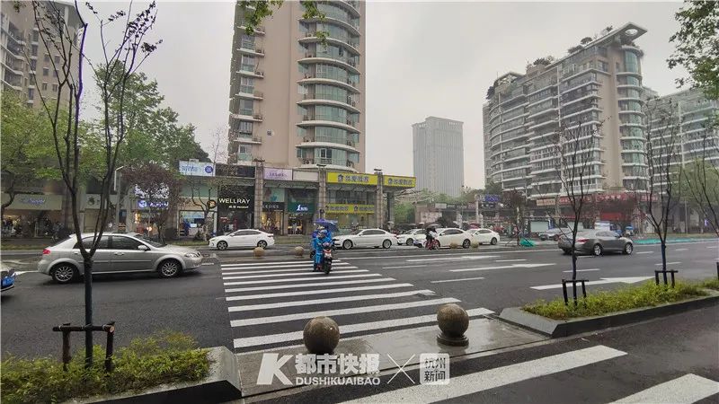 这样设置有什么好处?过斑马线不是要绕远路走了?具体效果到底如何?昨天中午,我到市中心的几个路口实地了解。