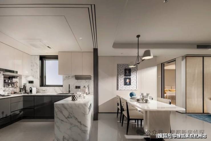 厨房更是拥有别墅级大空间,通铺中央空调、地段,甚至还有交付的奢石大岛台。