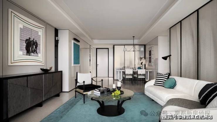 宽境阳台、客餐一体,全域贯通配合香奈儿高奢风,呈现超大尺度家庭公共空间;