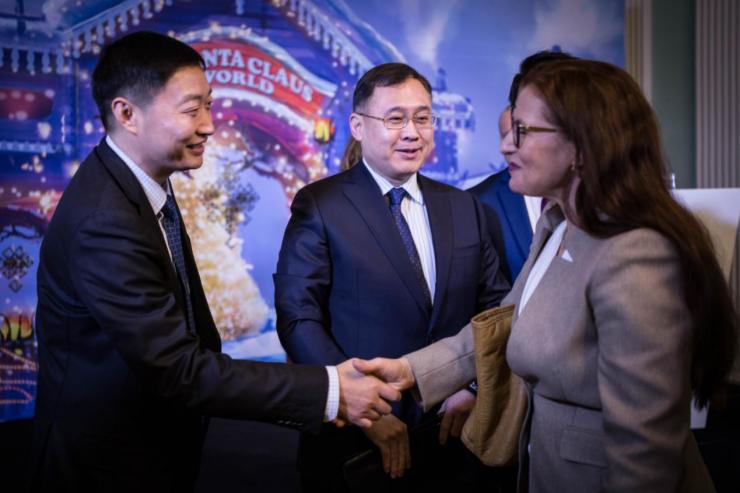 芬兰就业与经济发展部副国务卿Petri Peltonen、赫尔辛基副市长Pia Pakarinen和Nasima Razmyar等官员出席仪式。杭州新天地集团由董事长刘文东与芬兰圣诞老人品牌授权公司签署合作协议,获得中国区的特别授权,双方一起在中国建设圣诞老人主题乐园,进行圣诞老人文化IP的多元化开发。