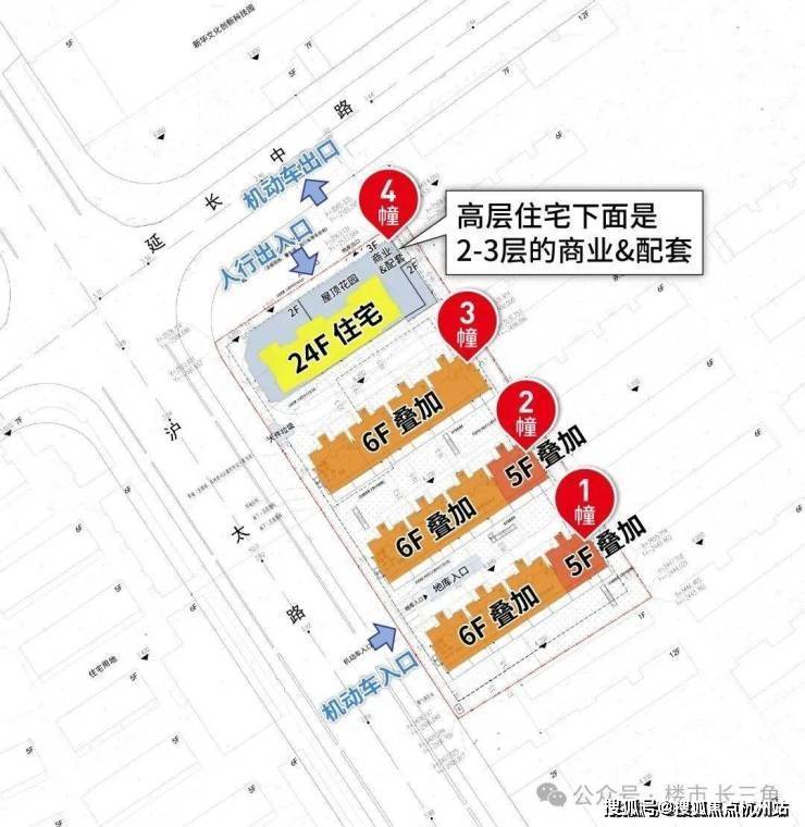 此外,小区实现完全人车分流,小区一共3个出入口,其中车行出入口可直接到达地库,车辆无需在小区内穿行,实现了人流与车流的完全分离。