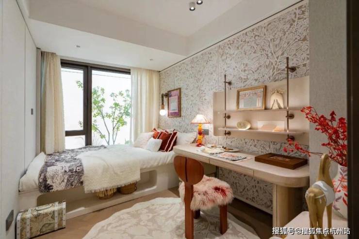 豪华的套房设计,北侧卫浴飘窗+南向床边双飘窗的设计,更是把这个空间的视野和收纳空间延展开来,尺度感真的很惊人。