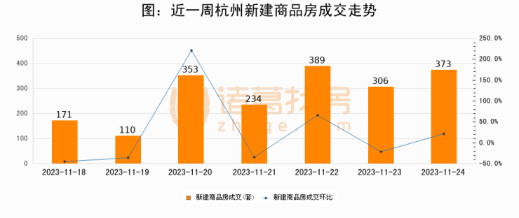 【杭州成交日报】11月24日新房成交373套、二手房263套;涨价房源30套