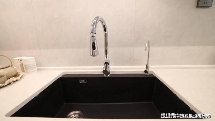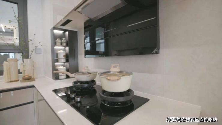 厨房电器方面配置了方太或老板等同等品牌系列三件套,超薄镜面机身的抽烟机、拥有防干烧功能的燃气灶,还有洗碗机,相较于很多项目配置的消毒柜,洗碗机更适合当下菁英年轻人解放双手的需求。