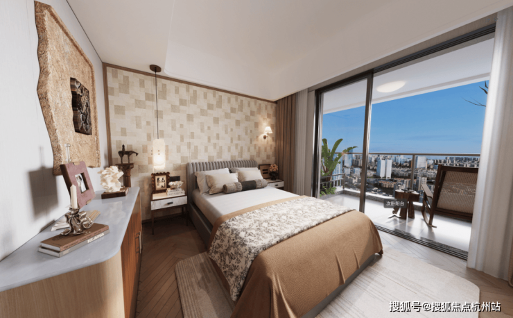 北次卧更是惊喜。这本身就是一个标准尺度的卧室,但卧室外面还连着一个装饰阳台加设备平台,为生活留足了想象空间。
