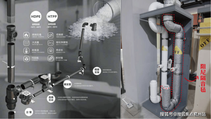 静音管道与设备守护安眠:采用螺旋排水管,环保阻尼隔声毡与管道结为一体,从源头降低水流噪音。