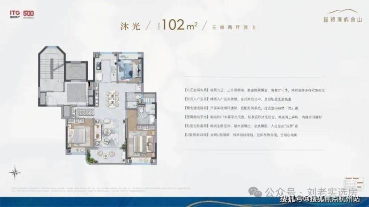 所以,虽然户型的建筑面积是约102㎡的3房,但整个空间的尺度感却能匹配改善型的宽绰3房。