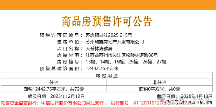 2025年12月12日,项目第二批房源领证,共72套,位于13幢、14幢、15幢、25幢、26幢、27幢,货值约4.38亿。