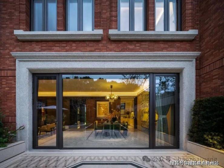 建筑基层石材选用近拟传统皇家建筑所用金山石的世贸金麻,经手工凿毛、酸洗做旧处理,搭配铜质落水管、水纹压花玻璃,每一处细节都在诉说海派大宅的优雅与贵重。