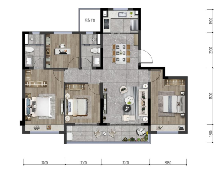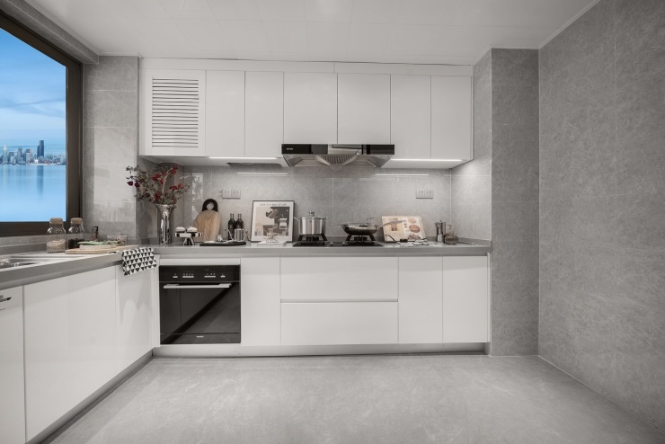 在精装方面,全盘标配了日立中央空调、威能地暖、百朗新风系统等,餐客厅地面为玛雅灰石材,搭配陶瓷大板客厅背景墙。卫浴龙头、花洒选用汉斯格雅;马桶则用的是杜拉维特。厨房配置西门子三件套(油烟机、燃气灶、洗碗机)、直饮过滤净水器等,品质拔萃。