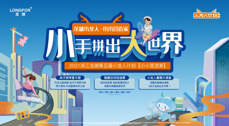 “小手拼出大世界”2021浙江龙湖第五届“小龙人计划”现已开启,6城27大初赛赛点同步开赛。初赛的比赛项目设有空间趣味赛与模型搭建赛,同时增加了线上微博互动环节,家长们可以通过发布带#小龙人计划#话题的内容积累热度值,助力萌娃获取高分。经过初赛、复赛一系列“过关斩将”,最终优胜家庭可获得五天四晚“天府之国”成都亲子夏令营及两天一晚金华不舍野马岭亲子研学之旅!