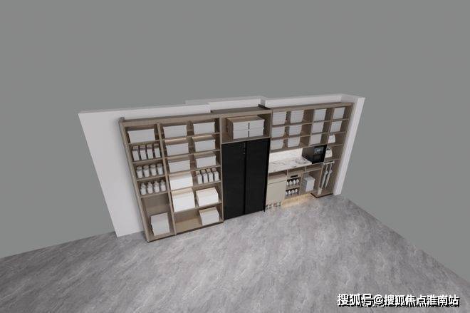 主卧和约99平户型一样,衣柜更大形成衣帽空间,还交付有半开放式、类似于酒店的迷你吧设计: