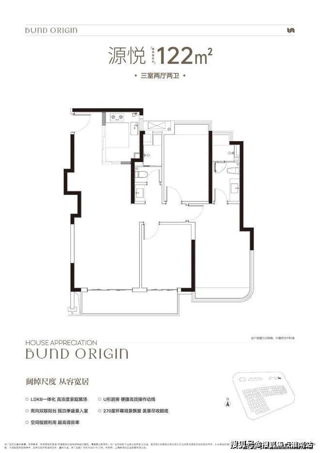 上海杨浦中建壹品外滩源著售楼处电话☎:400-9659-259(预约看房热线)建面约122㎡3房2厅2卫,非常标准的动静分离、三开间朝南户型。