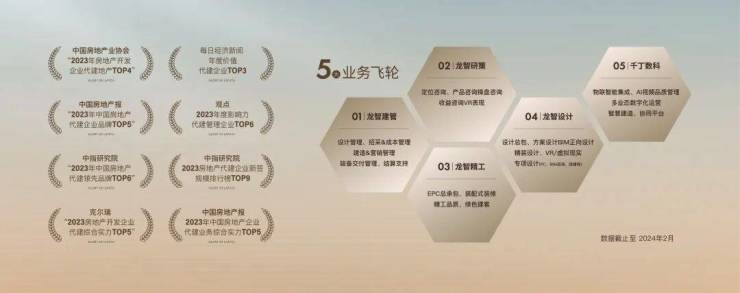 龙湖龙智造集成龙湖集团全业态开发经验,及行业领先的数字科技能力,以“龙湖智道未来城市”为理念,五大业务飞轮协周驱动,致力于成为“智慧营造领航者”