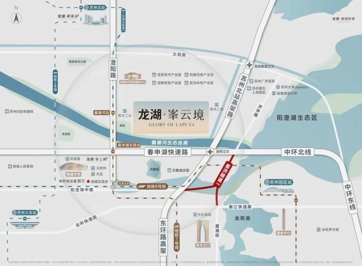 咫此近享双轨(地铁7-延长线在建/8号线)、双环(中环北线/苏州北高架路)一隧(阳澄湖星济隧道-在建)、等全维立体交通,4站苏州北,6站抵园区,约10min至龙湖·相城天街,约15min直通高铁站,约22min畅达园区。(信息来源于:高德地图/苏州发布)